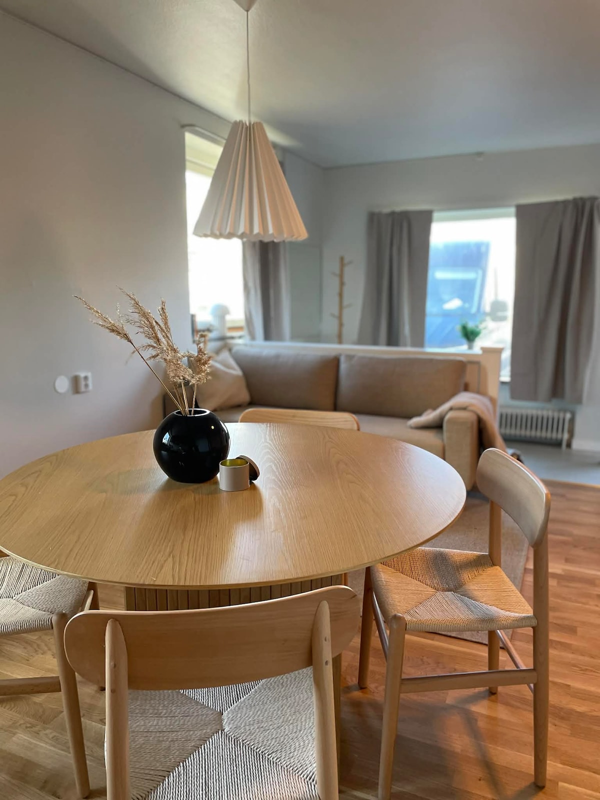 Enjoy a stylish experience at this centrally-located place. The apartment is located in a south-facing location on the ground floor in a larger house built in the 1940s. The apartment was newly renovated in 2024. 350 meters from grocery store 600 meters from the city center 1800 meters from the golf course 1800 meters from outdoor swimming pool Free Wi-Fi and parking with engine heater outlet at the front door. Fully-equipped kitchen with washing machine. Extra mattresses are available. Linen and towels included. Cleaning is included once a week.