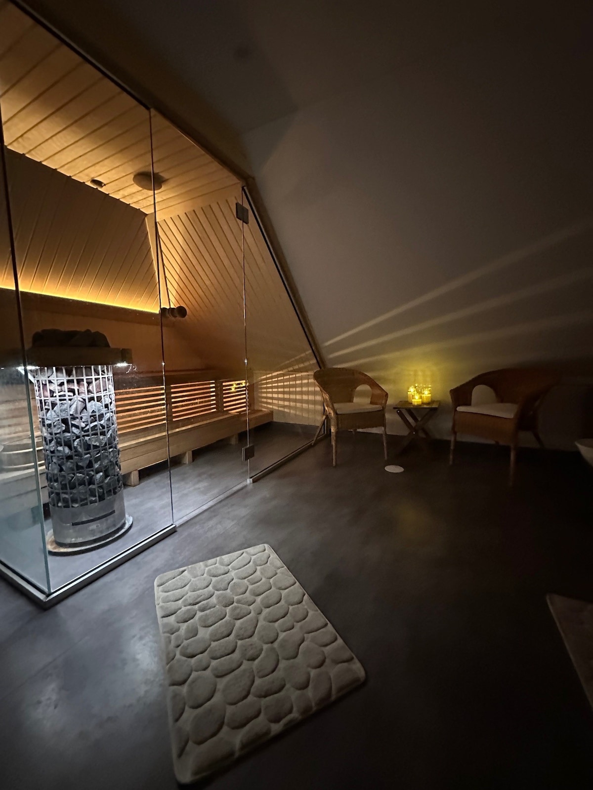 Här bor ni mitt i Öregrund med havet runt hörnet. Underbara badklippor, restauranger och butiker finns inom ett stenkast. I detta unika boende har ni en hel övervåning för er själva med utsikt över östersjön, egen bastu och en lummig innergård som ni delar med oss. Detaljer: Sovrum ett: tre enkelsängar Sovrum två: Bäddsoffa (140 cm) Sovrum tre: Dubbelsäng (180 cm) Fullt utrustat och rymligt kök, stort badrum med bastu och relax.