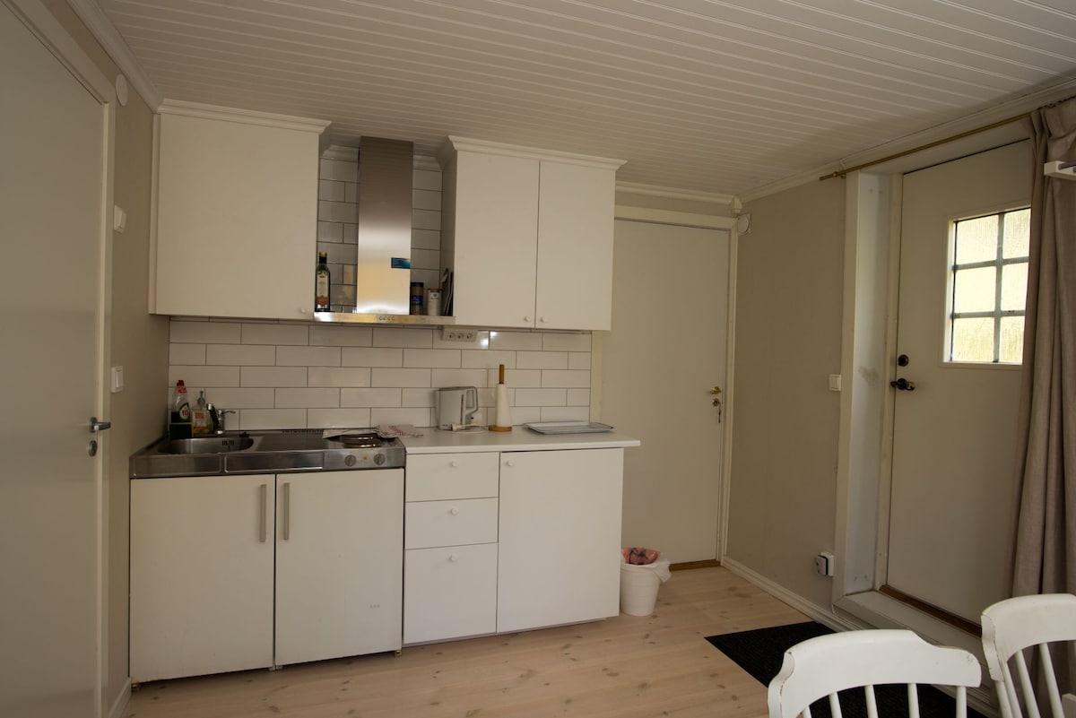 Remote cottage close to water with sun all day. 15 sqm plus an outhouse. Terrace, dock, and boat contribute to a cozy outdoor environment. A very nice location to experience Bergslagen. Parking available, bus communication 4km away. Kitchen, outdoor sink, outdoor shower, three beds (sleeps 4), outhouse. The tenant is responsible for cleaning on the day of departure. Bed linen + towels are to be brought by the guest. If you do not want to clean, we charge a fee of 500 SEK.