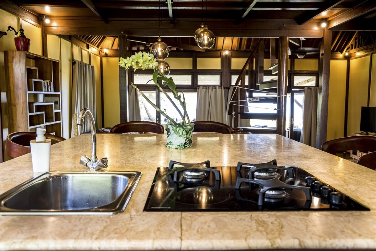 Experience local authenticity by staying in a stunning architect-designed villa inspired by our local artists. Enjoy the spaciousness, the pool, the lush garden, and a panoramic view of the world's most beautiful lagoon.