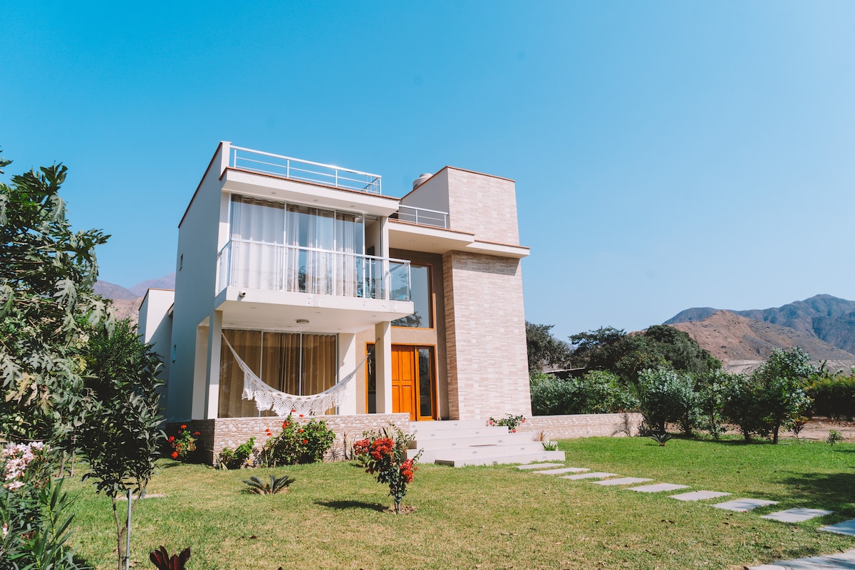 Relax with the whole family at this peaceful place. We are a pet-friendly and private home. We have all the amenities, water, electricity, Wi-Fi, Directv, swimming pool, jacuzzi, 5 bedrooms, 5 bathrooms, grill, wood-burning oven, Chinese box, and just 20 minutes from Trujillo