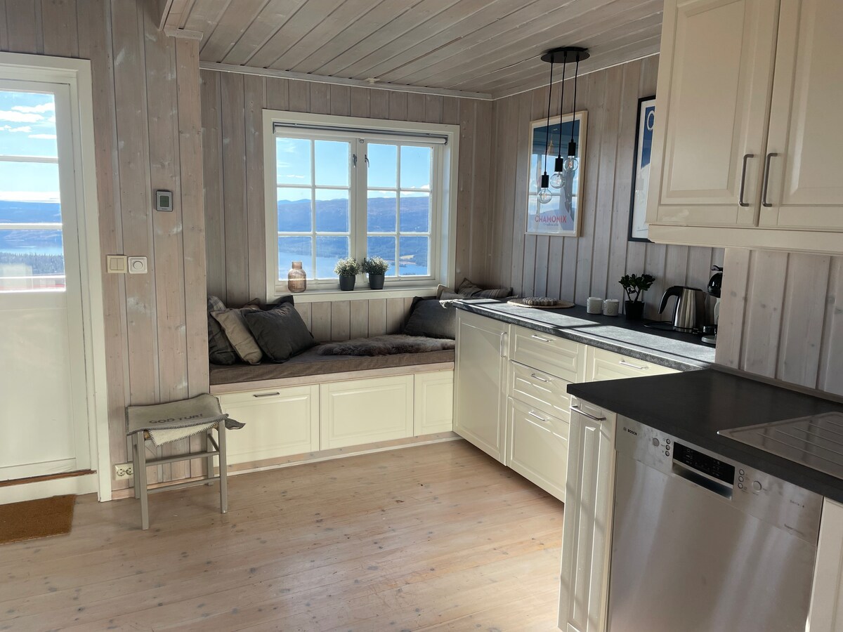 Utsikts leilighet over Beito med peis og terrasse