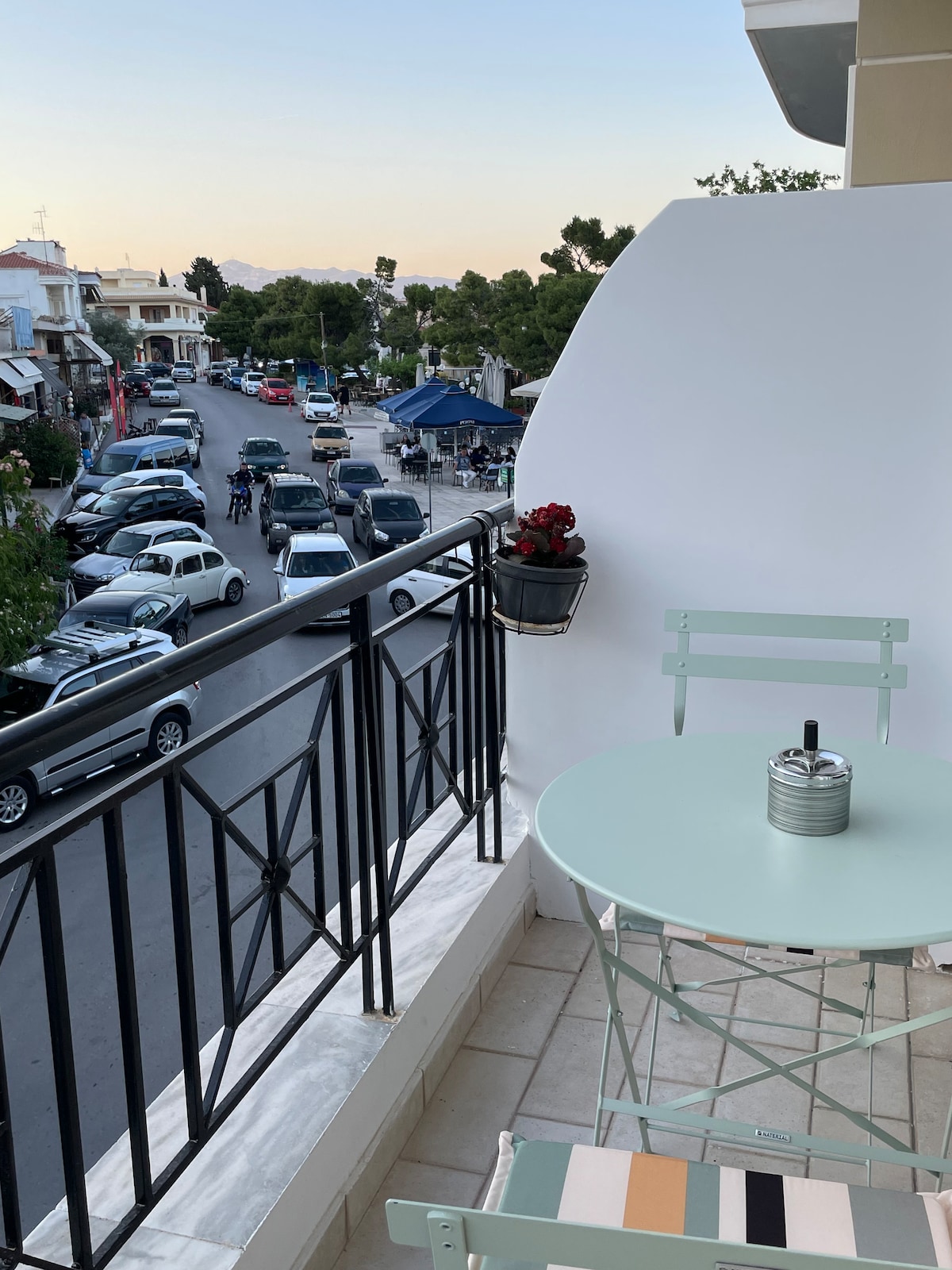 The modern renovated 60m2 5th floor penthouse apartment is located just 4-min walk away from the metro station Panormou on the airport line, an ideal quiet 'basecamp' for Athens exploration! Carefully designed and decorated by me as an architect, the apartment is fully equipped with everything one wishes, two smart TVs (in bedroom and living room) and a cute fireplace corner. Two huge balconies with plants in both sides with stunning panoramic view to the city and Ymitos mountain. Enjoy!