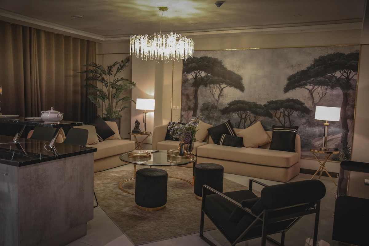Our 1 BHK Orbit Penthouse in DHA Phase 5 is where urban chic meets celestial cool. Think: a glowing moon wall for those late-night selfies and a bold dollar-stacked art piece that screams "main character energy" Wake up to park views from your private balcony swing, binge your faves on the 50" 4K Smart TV, or cook up something aesthetic in the fully loaded designer kitchen. The interiors? Abstract, stylish, and made for the feed. Plus, you're right next to Lahore's hottest dining spots.