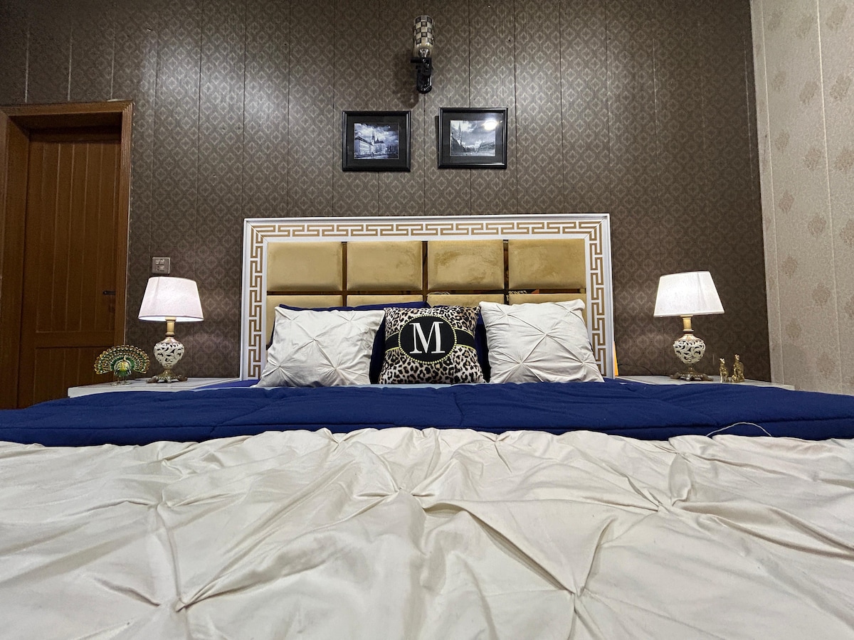 Kick back and relax in this calm, stylish space. Enjoy 2 luxury rooms with all amenities available in a family friendly holiday home. Free parking on site. Enjoy full privacy of the entire place to yourself. Modern furnishing and chic interior. Ensuite bathroom with hot and cold water, a fully equipped kitchen, and a terrace with stunning garden view. Ideal central location with walking distance to Bahria International Hospital, Safari Mall and the iconic Talwar chowk. 24/7 security and watchman