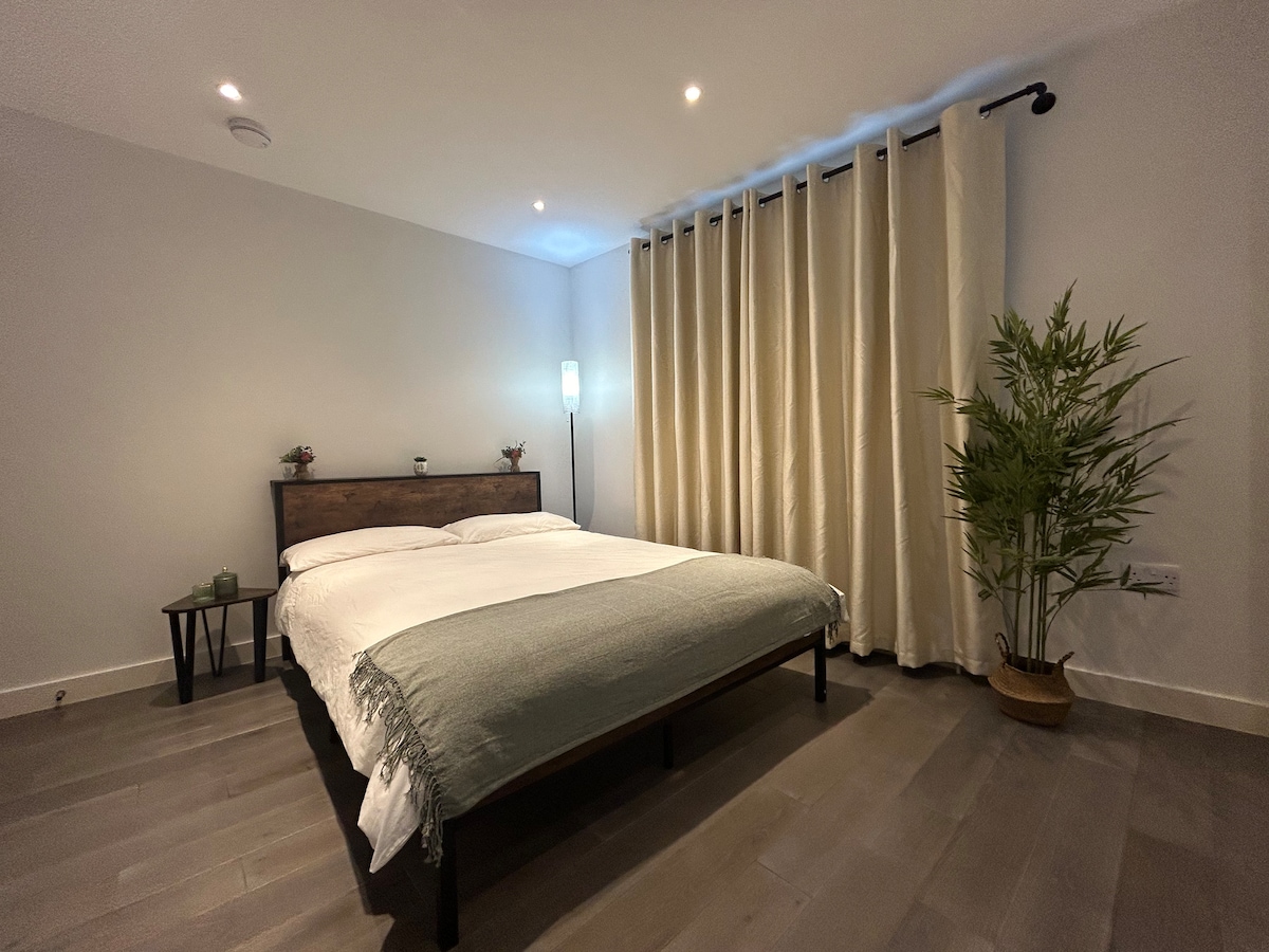 Overlooking the fields, this luxury top floor space invites you to unwind. Ultra-clean, peaceful and beautifully styled. Equipped with everything you need and more. Brew fresh bean-to-cup coffee with the Ninja Luxe Coffee Machine. Stream your favourite shows on the Smart TVs, play board games as a group or work where the view inspires you. Whatever the purpose of your stay, working or relaxing - this is the place to be! London is close by, but feels like a world away. Always a place to park too!
