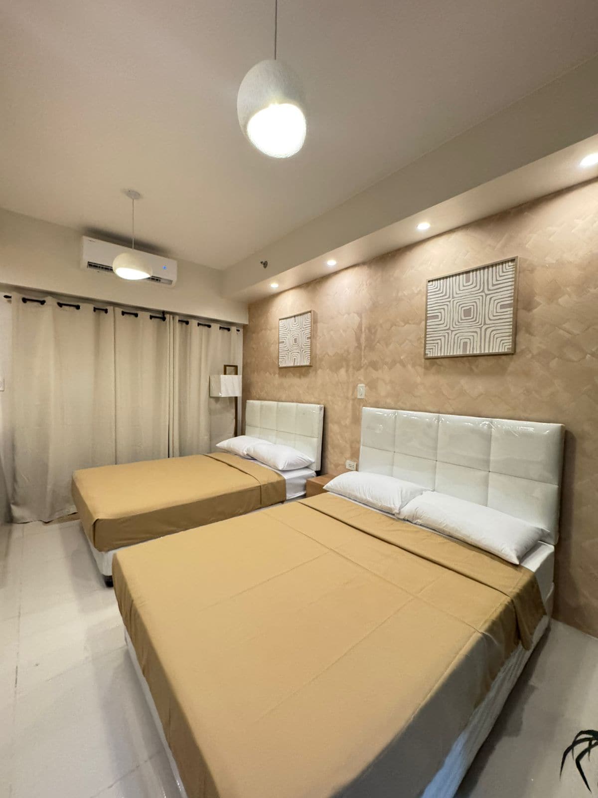 Experience modern comfort in this hotel-style condo in Central Makati, ideal for up to 4 guests. Enjoy a queen bed, a cozy double sofa bed, and a spacious 34 sqm layout. Stay connected with FAST FIBER INTERNET and Netflix, while blackout blinds ensure restful sleep any time. Cook with ease in the equipped kitchen, relax in the heated shower, or unwind in the bathtub. With keyless entry and just steps from TRIDENT (NCLEX exams), you're perfectly positioned near all the city’s best spots!