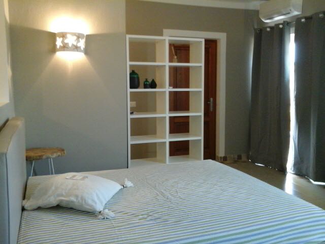 STREET PARKING,FREE,NOT PRIVATE. THE MUNICIPALITY OF PALAU REQUIRES A TOURIST TAX of €3 PER DAY PER PERSON. It is a large room of about 50 square meters, with the separate bed area and a single sofa bed in the living area. Outside, in the courtyard , there is the laundry room and the freezer. It is a village house that I renovated without distorting its characteristics,it has a kitchenette with two induction stoves, smart TV in the living room , the Wifi connection, hot/cold heat pump.