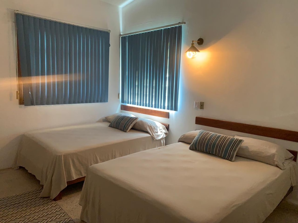 Desde nuestra recién renovada habitación #4 podrás acceder caminando y fácilmente a sitios elementales para tu estadía en Palenque, tales como bancos, restaurantes, paradas de transporte pública, tiendas, fruterías. Estamos ubicados en el corazón de Palenque, a tan solo dos cuadras y media del Parque Central.