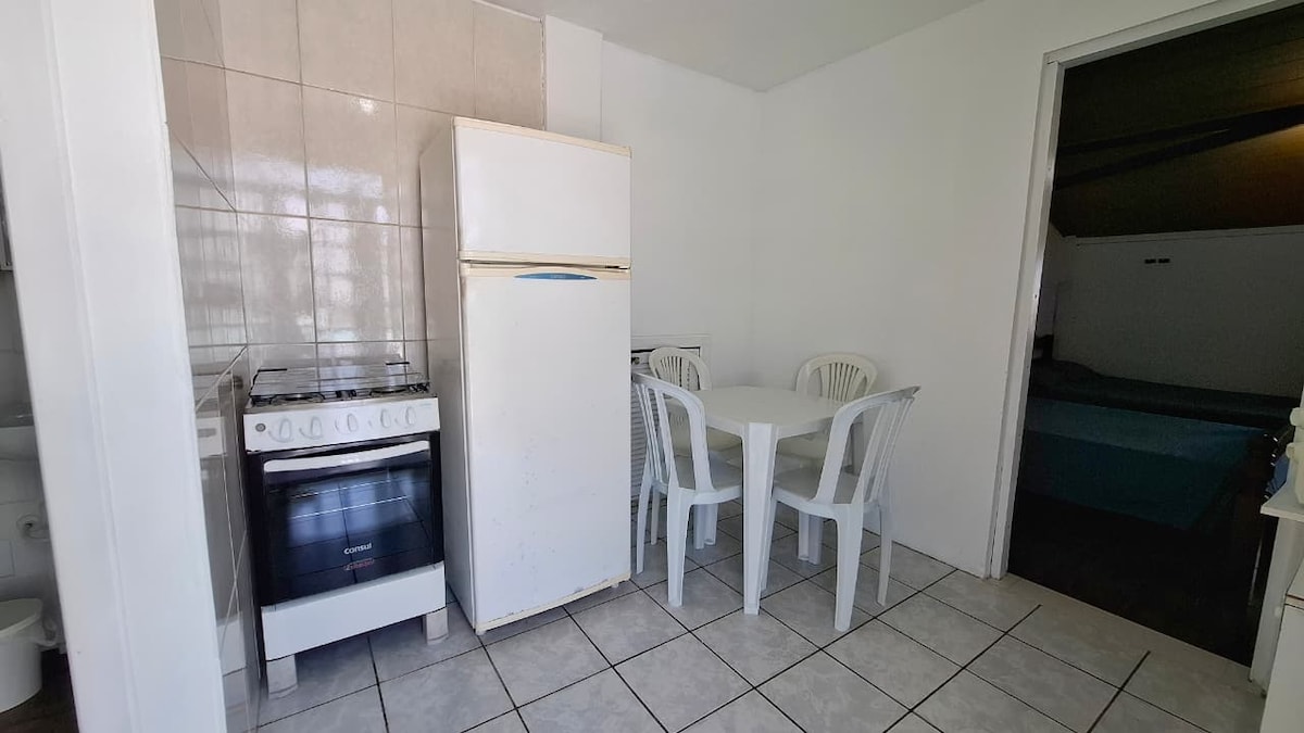Modern and cozy studio in the Abraão neighborhood of Florianópolis, designed to offer comfort and practicality. Accommodates up to 4 people, with a double bed, sofa bed, functional kitchen, private bathroom and fast Wi-Fi, also ideal for a home office. Clean and cozy environment, perfect for couples, friends or small families. 📍 400m from Praia do Bom Abrigo, close to other beaches, 10 minutes from the city centre, close to markets and services. Here you feel at home. 🤍