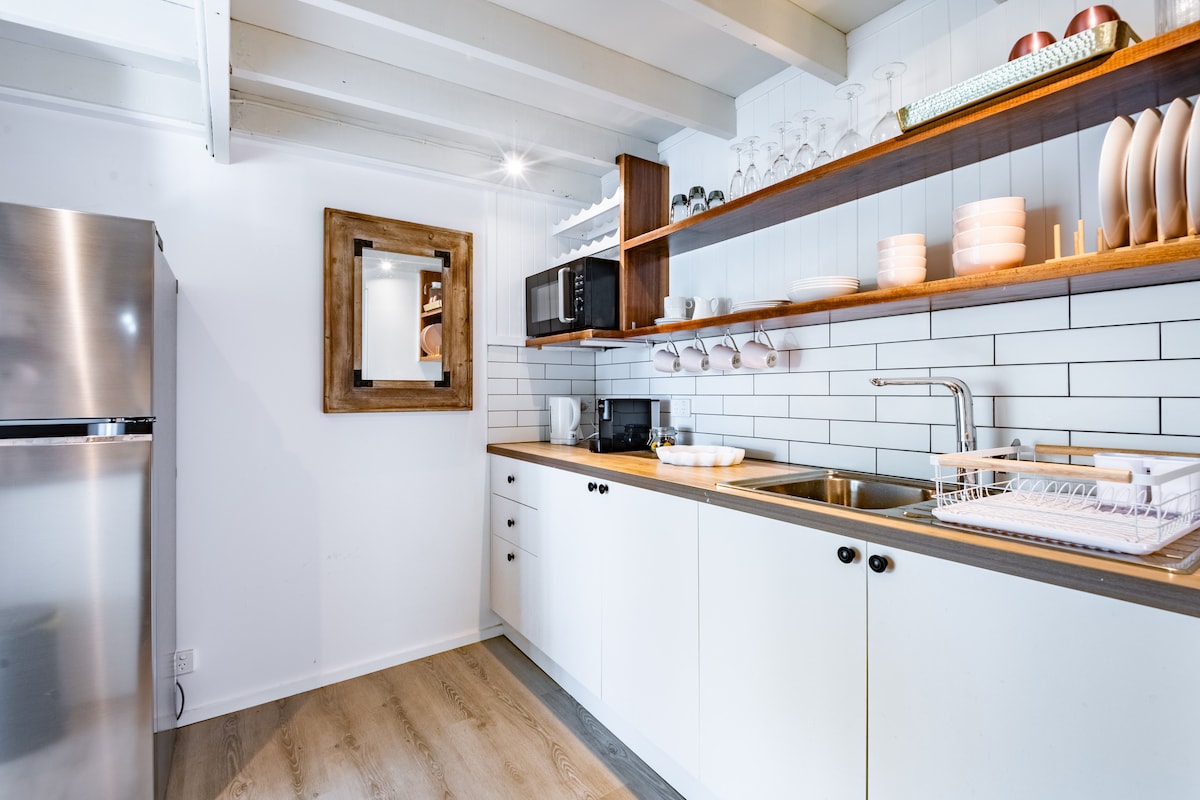 As seen on Ch7 Morning Sunrise, House&Garden, Inside Out, Homes to Love Au, My Favourite Stays Au & NZ, Stayawhile magazines and Sommerhusmagasinet (Europe) The smell of salt air, the sound of water lapping, the sun glinting off ripples that surround you...a feeling of peace and the world left behind. The Salty Dog is a space that is both cosy and open to the water, a wooden boathouse for two that invites you to relax and just 'be', to go off grid and reconnect with mother nature at her best.