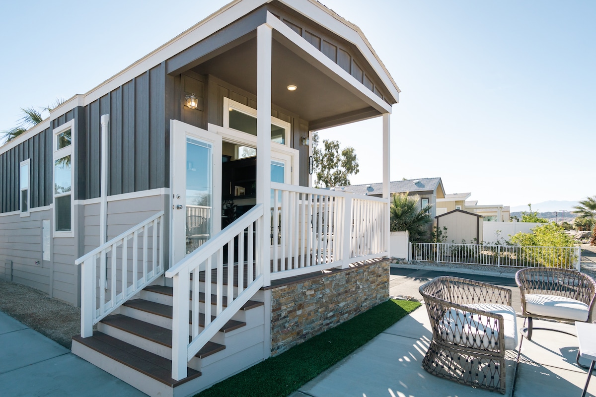 Welcome to La Quinta del Lago!! A peaceful space for you to enjoy. This sweet waterfront tiny home has gorgeous views of the mountains. It is the perfect place to come back to from exploring the desert! Newly remodeled, light bright space, high windows and ceilings. You can relax and enjoy yourself in the back patio, with a huge pine tree and peaceful view of the pond. Here, you can either start a tranquil day, or enjoy the romantic stared sky at night.