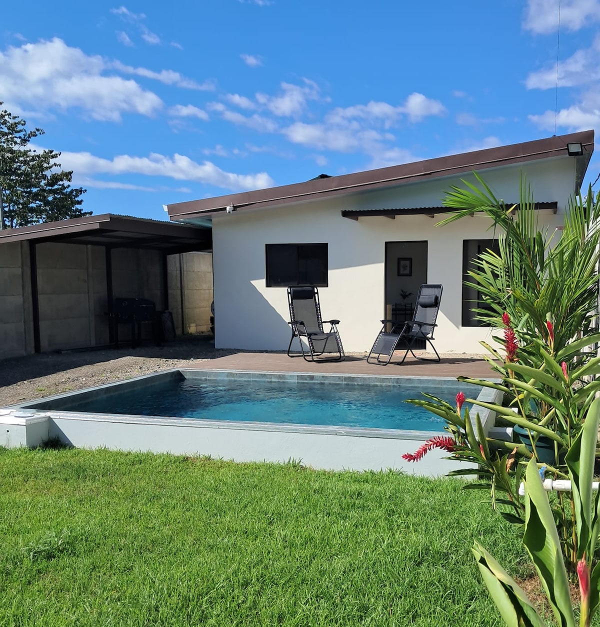 Relax with family or friends at this peaceful, clean and brand new two bedroom house, located in one of the most biodiverse places on the planet! Your stay includes use of all watersports toys, pool and playground for children. The beach is calm and warm with many beach restaurants and bars within walking distances. If you have children, we also offer Osa Jungle Camp that the children may attend for a fee while you enjoy your holiday. Many exotic animals and sea life right outside your door.
