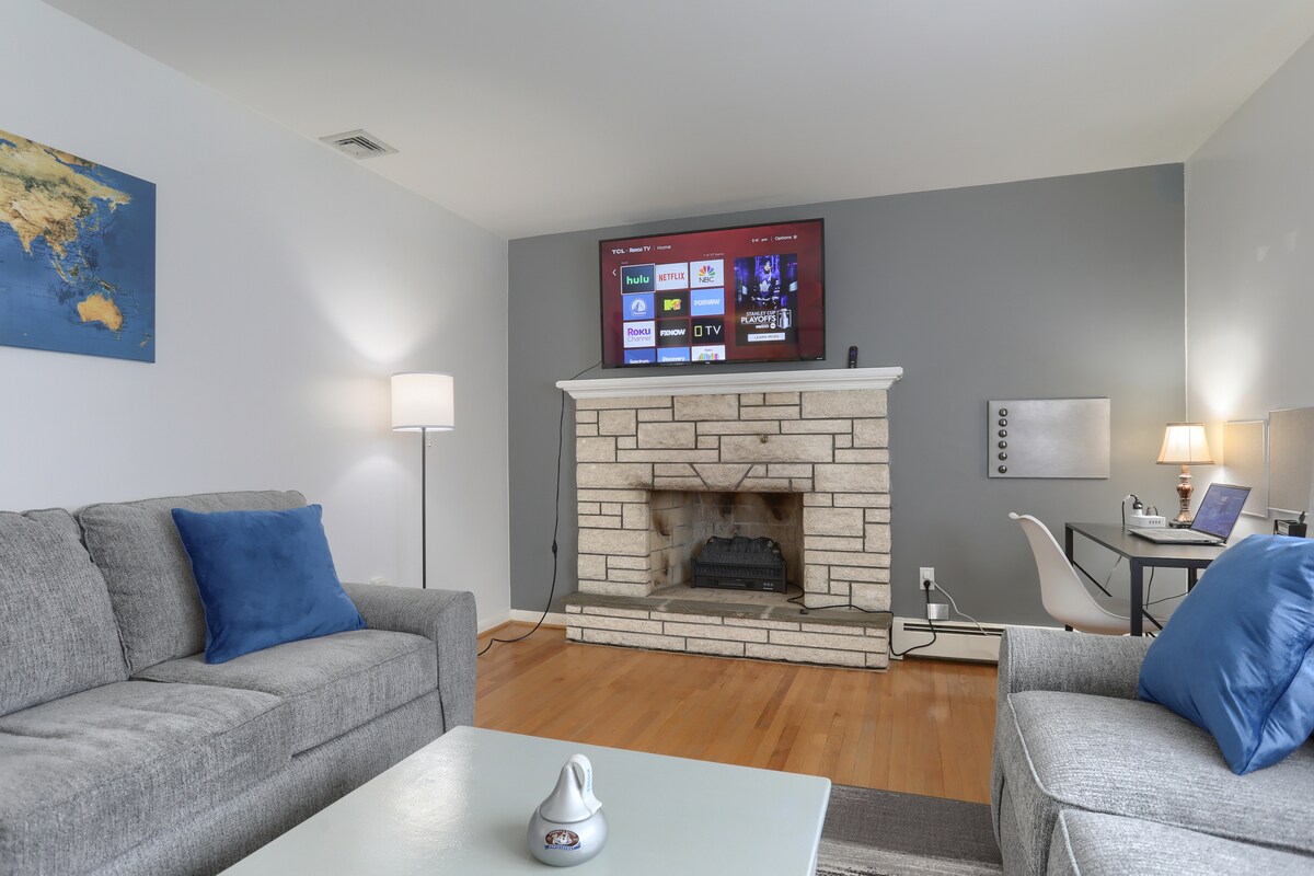 Trust In The Reviews! Our 3 Bedroom, 2 Bathroom Nest Features Modern Amenities with a Fun Retro Vibe and Private Grass Yard! Roast Marshmallows & Grill Fireside Only 10 Minutes To Hershey! The Spacious Lower Level Rec Room Features A Foosball Table, Full-Size Air Hockey Table, Big Screen TV w/ Atari Legacy Game Console, and Loads of Board Games and Books. Complimentary Netflix, Hulu and Disney +, and ESPN+!