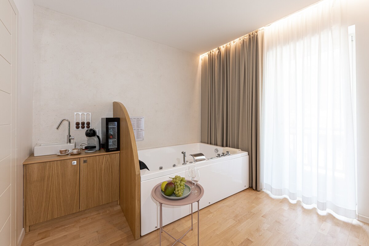 The apartment is located in front of magnificent vineyards, overlooking the beautiful Val di Non. Equipped with a bright and spacious kitchen-living room with double sofa bed and extendable dining table. The kitchen is modern and fully equipped, with a peninsula and a beautiful window overlooking the garden. In addition, a large double bedroom with a warm and relaxing infrared sauna inside. An elegant windowed bathroom with LED-illuminated shower. Private parking.