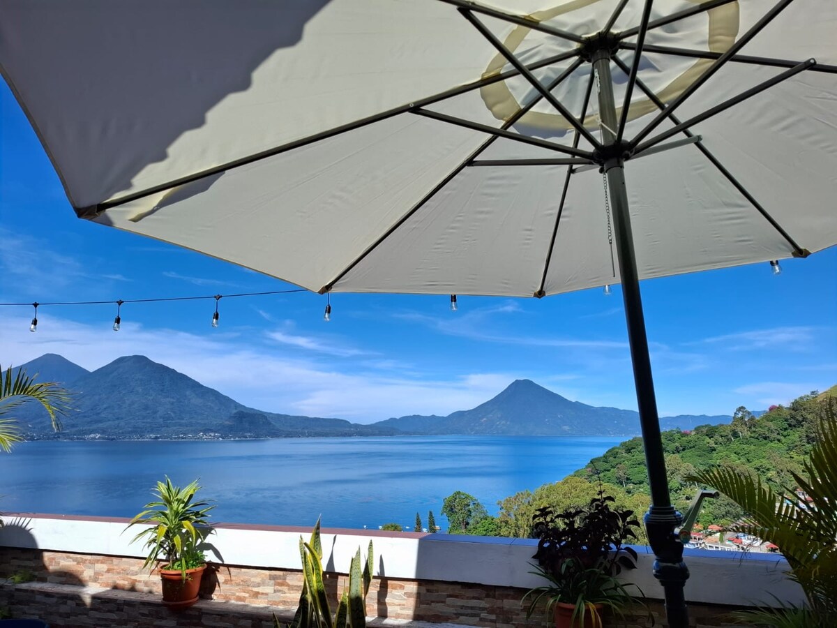 This brand new modern home is lakefront to Lake Atitlan Guatemala, the most beautiful lake in the world. Powered only by the sun, this green energy home has 3 bedrooms and 3.5 baths with a large hot tub, futbol (soccer) field, and modern dock. Come to relax and get away, and/or get some work done with highspeed Starlink internet with a powerful mesh wifi network. Residential area, yet only 5 min walk to restaurants/bars. The solar only heated hottub is not hot on rainy or cloudy days.