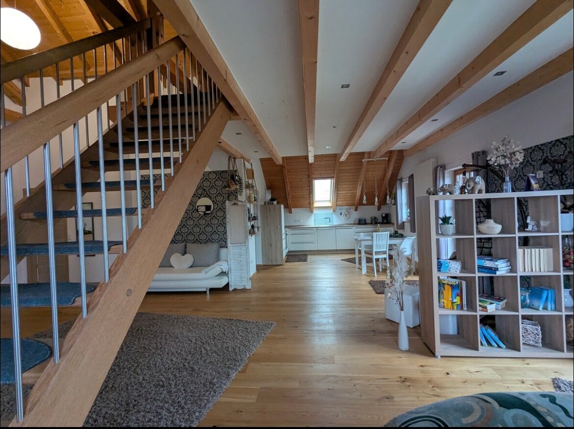 Stylish restored old barn in a stunning secluded location, offering 120 sqm of space with panoramic views of the countryside, a 50 sqm gallery with large windows, an infrared cabin, a walk-in shower, a bathtub, a luxury designer kitchen, terrazzo marble flooring with electric underfloor heating, a historic tiled stove from 1700 and a fenced garden for as many dogs as you like. A dream just 15 min. from Passau, 3 min. from the motorway, and 10 min. from the Danube. Bookable from Nov 2025