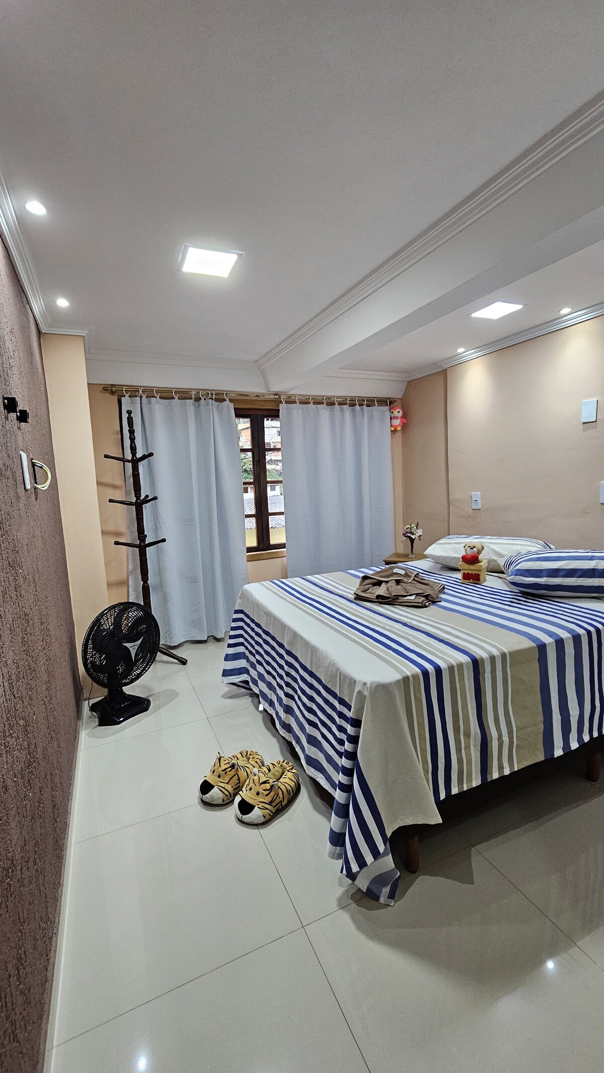 kitnet nova, 38m², independente, fica na parte da frente da minha casa com portão individual acesso único do hóspede. Não vai dividir o espaço com outros hóspedes. O espaço é destinado apenas para hóspedes respeitosos, educados e discretos, que valorizam o silêncio. 🔖 Trazer toalhas e produtos de higiene pessoal. Fornecemos roupa de cama.