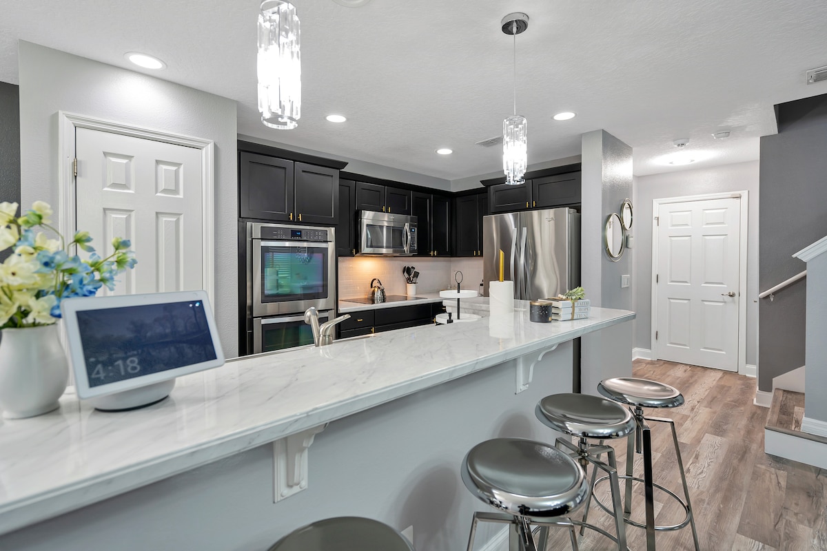 Welcome to your modern escape in Kissimmee! Just 15 minutes from Orlando International Airport, this beautifully renovated 3-bedroom, 2-bath home offers the perfect blend of comfort and luxury. Every detail has been thoughtfully upgraded—from the brand-new kitchen and spa-like bathrooms to the pristine private pool area—ensuring a relaxing stay. With sleeping arrangements for up to 9 guests across six beds, there’s plenty of space to unwind.