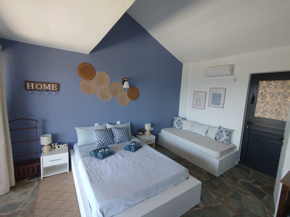Παραδοσιακό σπίτι με μεγάλη αυλή ακριβώς 5 λεπτά με τα πόδια από το λιμάνι του Μαρμαρίου. Ανακαινισμένο το 2023 και πλήρως εξοπλισμένο για κάθε σας ανάγκη. Μόλις 4 λεπτά με το αυτοκίνητο από την ξακουστή παραλία της Μεγάλης Άμμου. Υπέρδιπλο κρεβάτι και 2 αναπαυτικοί καναπέδες-κρεβάτια (Δωμάτιο και σαλόνι), γραφείο, ισχυρό wi-fi, ηλιακός και πλήρης εξοπλισμός κουζίνας. Είμαστε περήφανοι για τις συλλογές των βιβλίων μας που ανανεώνονται συνέχεια. Δανειστείτε ένα για τις διακοπές σας.