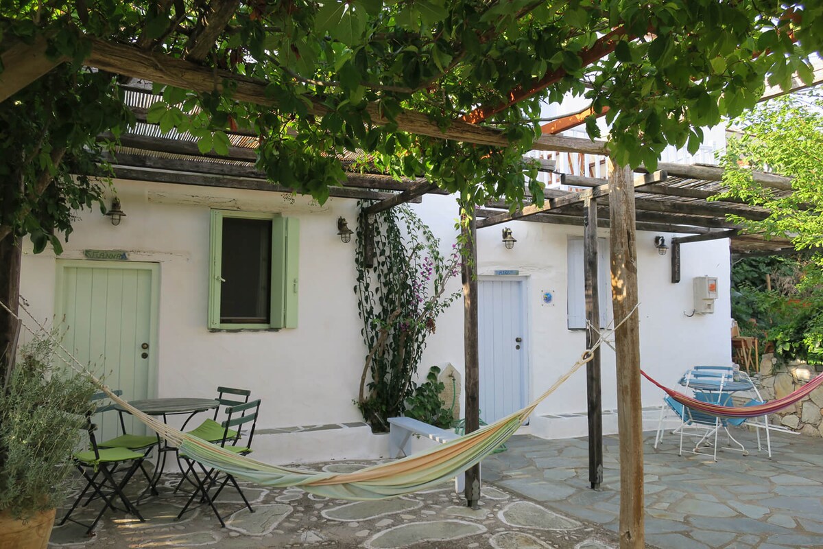 Enjoy your stay on Skopelos island, living the village life in a traditional and peacefull house. Wake up every morning with the green of the mountains and the blue of the sea in front of you. The house is located up in the village in a very quite neighborhood, car free. There, you can walk and enjoy the charm of the old village.