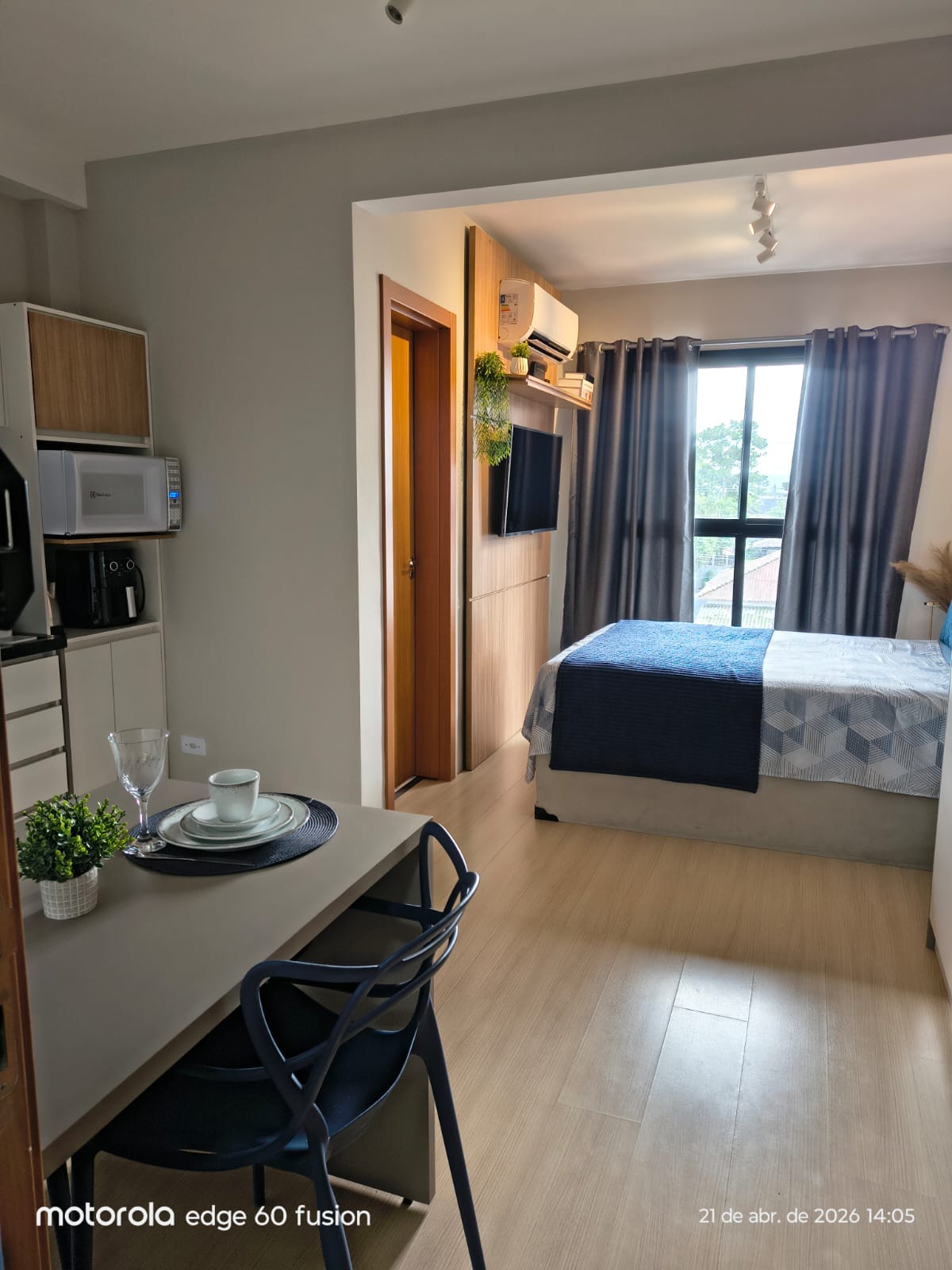 ✨ Studio novinho, moderno e mobiliado para sua estadia perfeita. Cama queen, tv smart 55 polegadas, microondas, fogão e ar condicionado. Cada detalhe foi pensado para oferecer praticidade, aconchego e estilo. Ideal para quem busca conforto, seja a trabalho ou lazer. Aproveite um ambiente agradável, com cozinha equipada, internet rápida e decoração moderna. Perto de tudo que você precisa para uma experiência incrível. Conta com lavanderia compartilhada e mercadinho. Nao tem estacionamento.