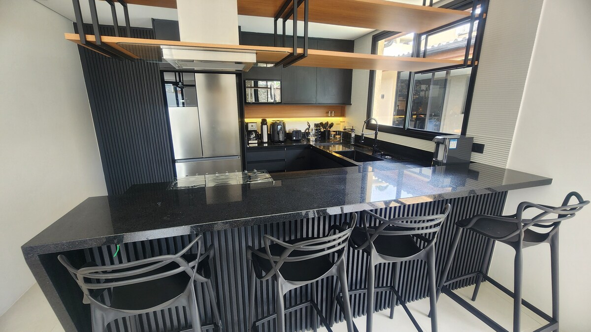 Live unforgettable moments in this unique and ideal place for families. There are 500 m² private, Jacuzzi, swimming pool, gourmet area with parilheira, beer and barbecue area, has 8 rooms with 4 suites. All the furniture is new, parking space for 5 cars, air-conditioning in all the rooms. New, first rentals! Centro de Praia de Leste, 3 blocks from the sea, close to the best restaurants, markets and pharmacies.