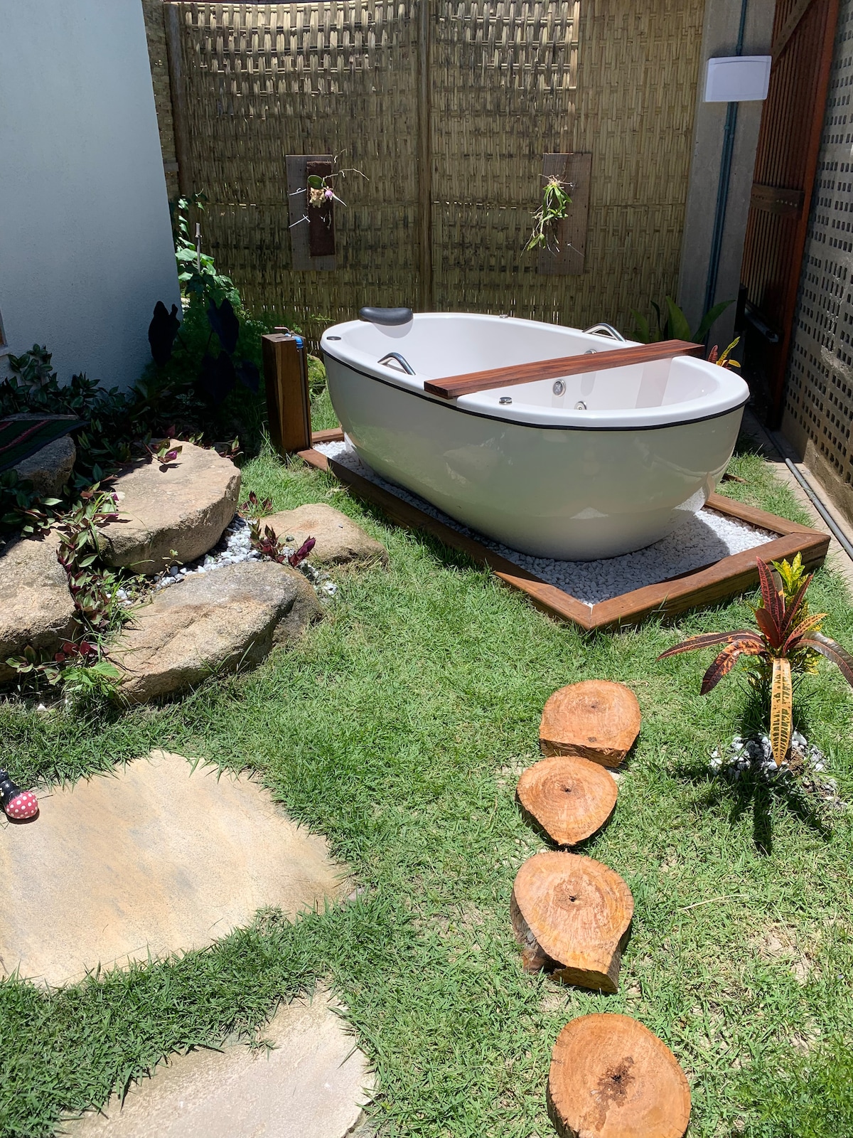 Privacidade total A Suíte Arquipélago é novinha acaba de ser inaugurada. Oferece estilo, hidromassagem no jardim, privacidade e vista para as montanhas. O projeto é assinado por um arquiteto premiado internacionalmente. O paisagismo, inspirado na Mata Atlântica, integra espécies nativas. Fica localizada no bairro Porto Canoas um bairro tranquilo, a 4 minutos do Centro Histórico de Paraty e da Praia do Jabaquara. A Suíte é Ideal para quem busca boa localização, relaxar e natureza.