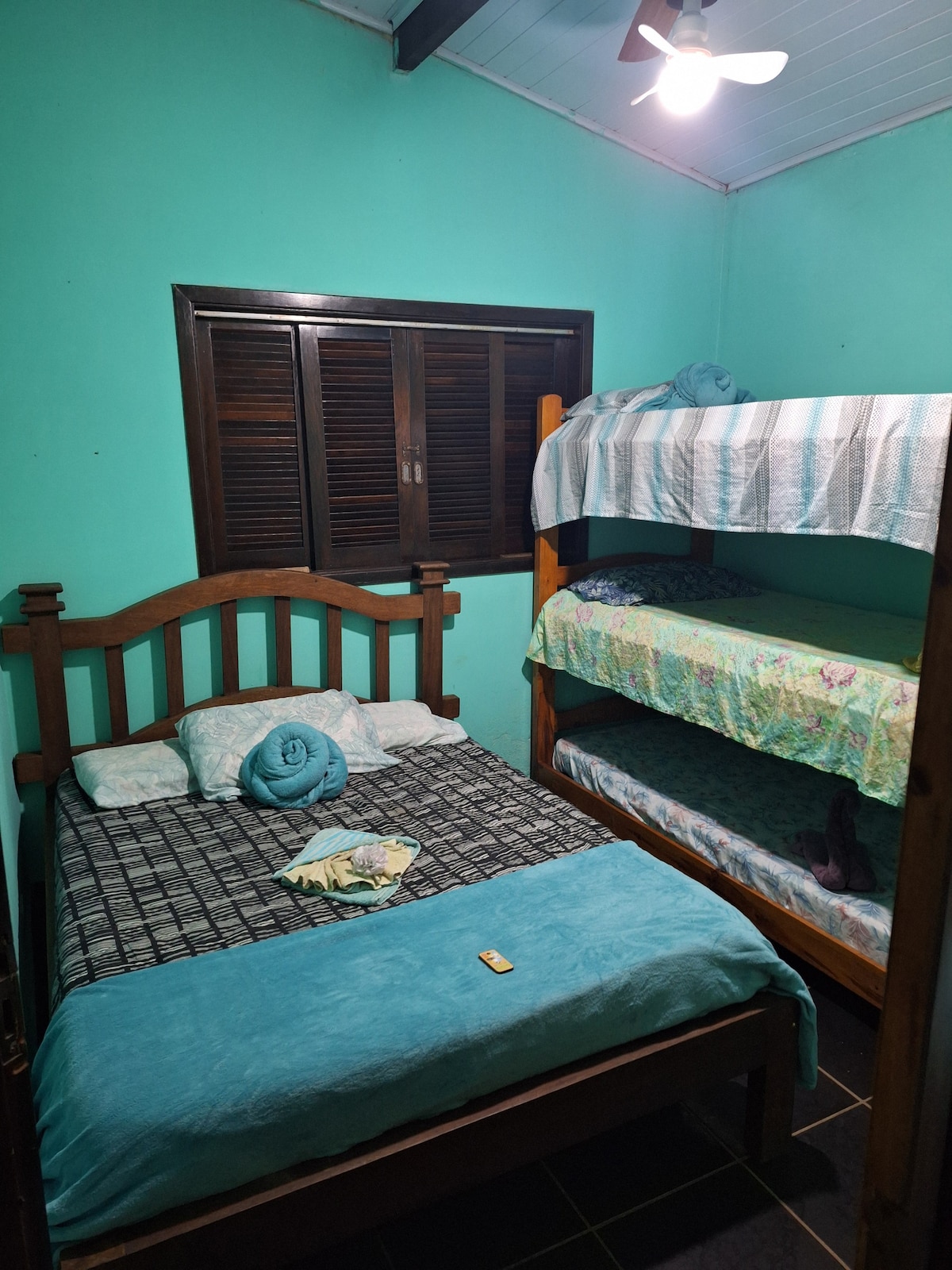 Rustic and cozy cottage for 2 people with a double bed. Individual kitchen with general utensils such as a refrigerator, stove, microwave, TV with Sky, air-conditioning in the bedroom and a fan in the living room. Balcony overlooking the sea. Pets are allowed because it has a small private yard with the entire area fenced. Access is only by trail or boat and the transfer for check-in and check-out on our boat is already included in the daily rates.