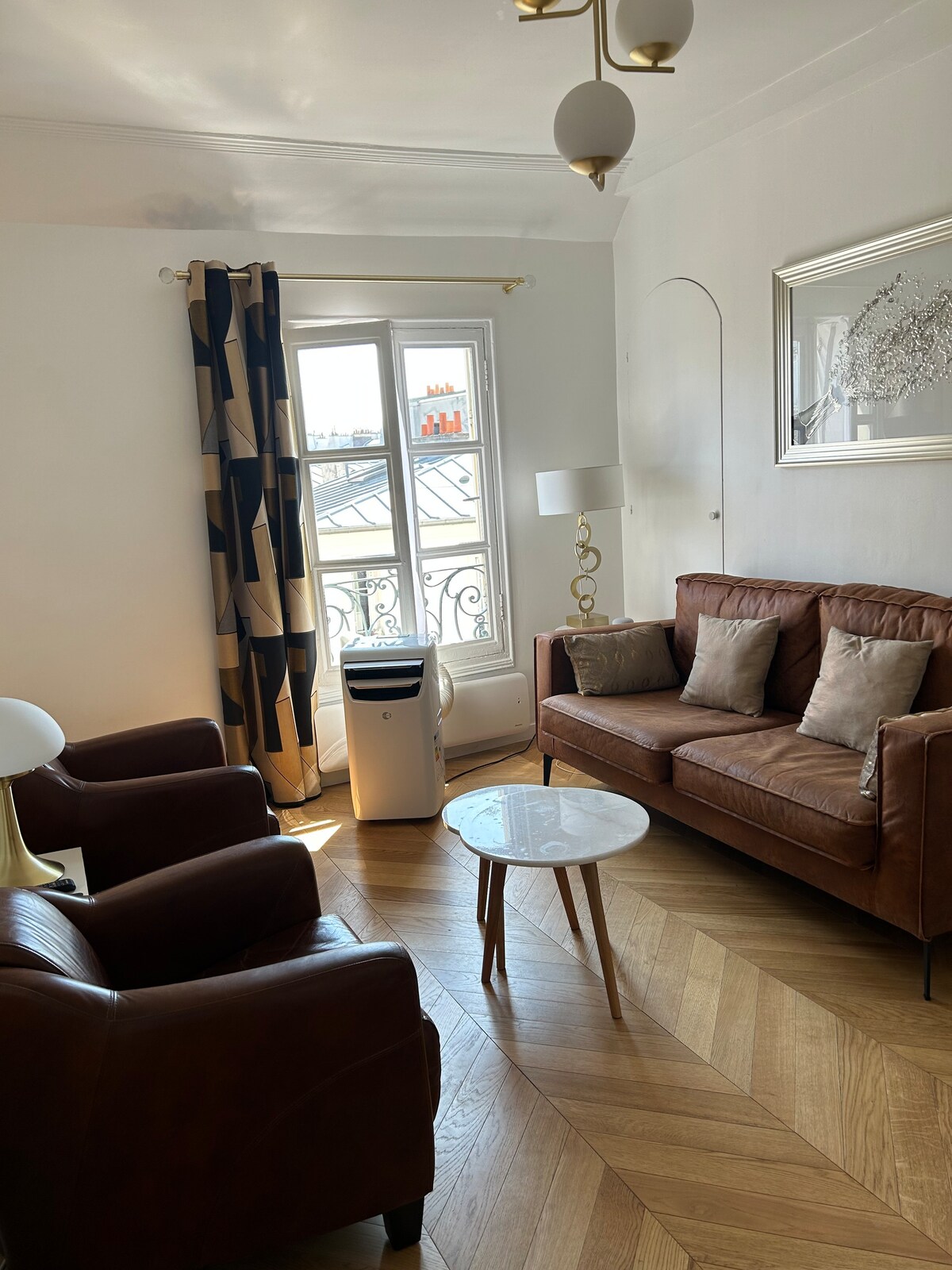 Appartement climatisée de 60 m2 à l’agencement haut de gamme dans l’hyper centre de Paris quartier historique de Montorgueil, célèbre pour ses commerces de bouches, ses petits bistrots et restos. L’appartement se situe au 1 er étage d’un immeuble dans une rue très calme. Il a été refait à neuf en 2023 par une célèbre architecte et donc très bien agencé avec des équipements de très haut standing. Vous y serez comme dans une suite d’hôtel avec le charme en plus, d’un vrai logement parisien.