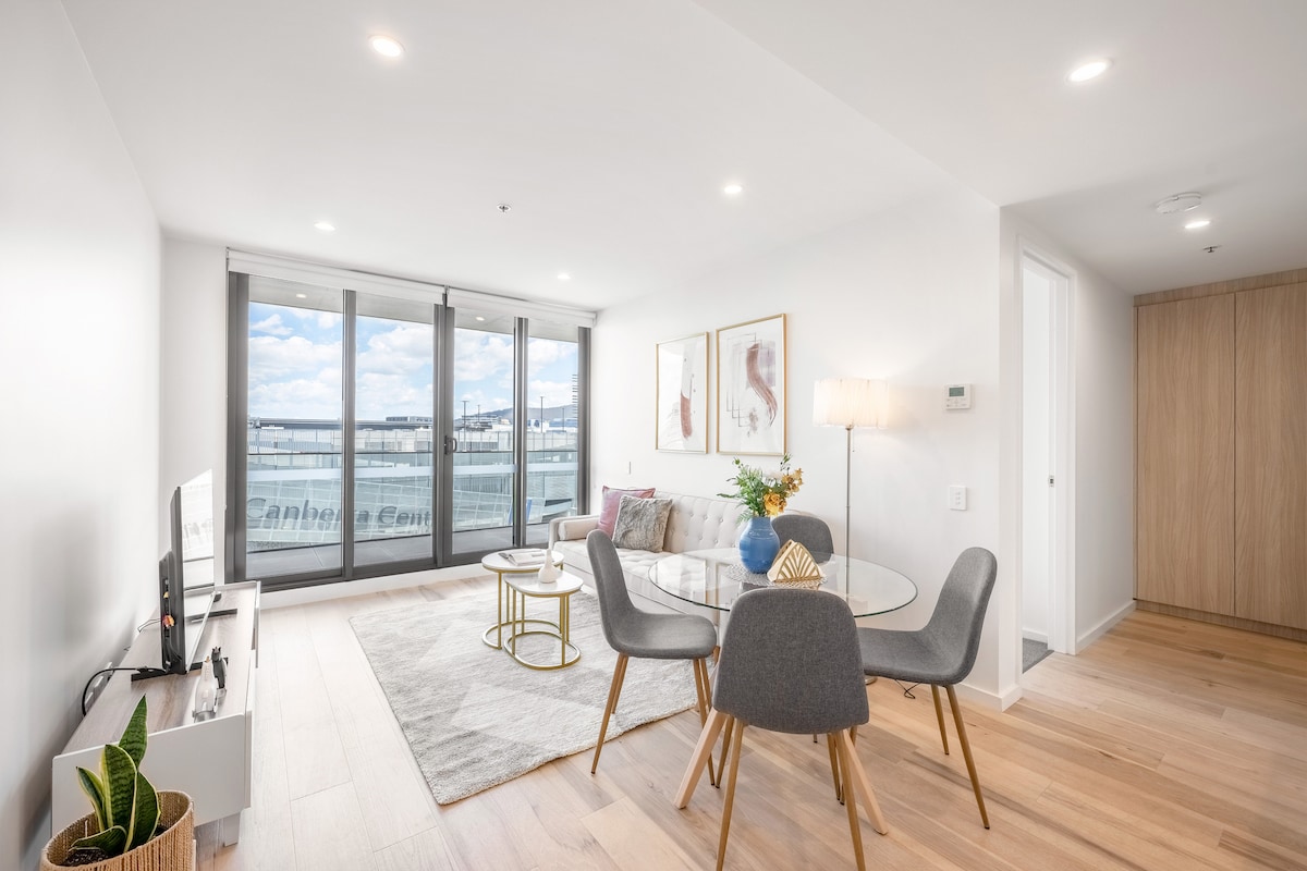 *Book today to unveil the beauty of this lovely apartment :) Key highlight: - Complementary Secured Parking - Rooftop BBQ area with 180° Mountain View (Building Amenities) - 2 mins walk to Canberra Center - 6 mins walk to Lonsdale St (Place for good restaurant and pubs) - 6 mins drive/17 mins walk to the ANU - 8 mins drive to Canberra airport - 9 mins drive to Mount Ainslie Lookout Our stylish apartment has blackout curtain and quality mattress to comfort your stay.