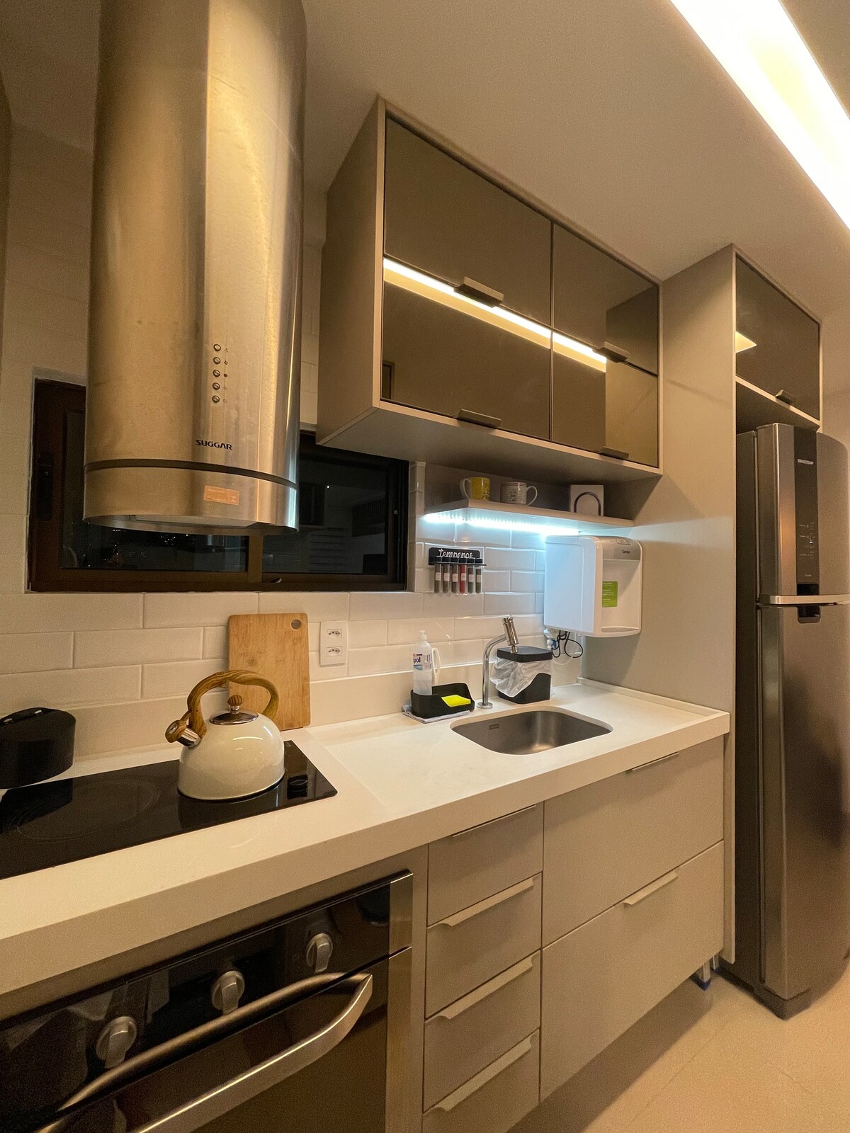 Watch the film of our space in @senahospedagem Fully air-conditioned flat with two air conditioners, two 50-inch Smart TVs and Wi-Fi. Designed, providing a lot of comfort. Ideal for up to 4 people, two in the bedroom with a double bed and two on the sofa bed. Super complete, we have kitchen with all utensils ( from toaster to Airfryer). Equipped bathroom ( dryer to clothes) , ironing board. Hot water. Bed linen and bath kit for your convenience.
