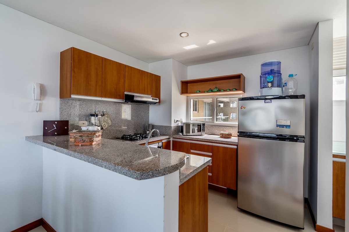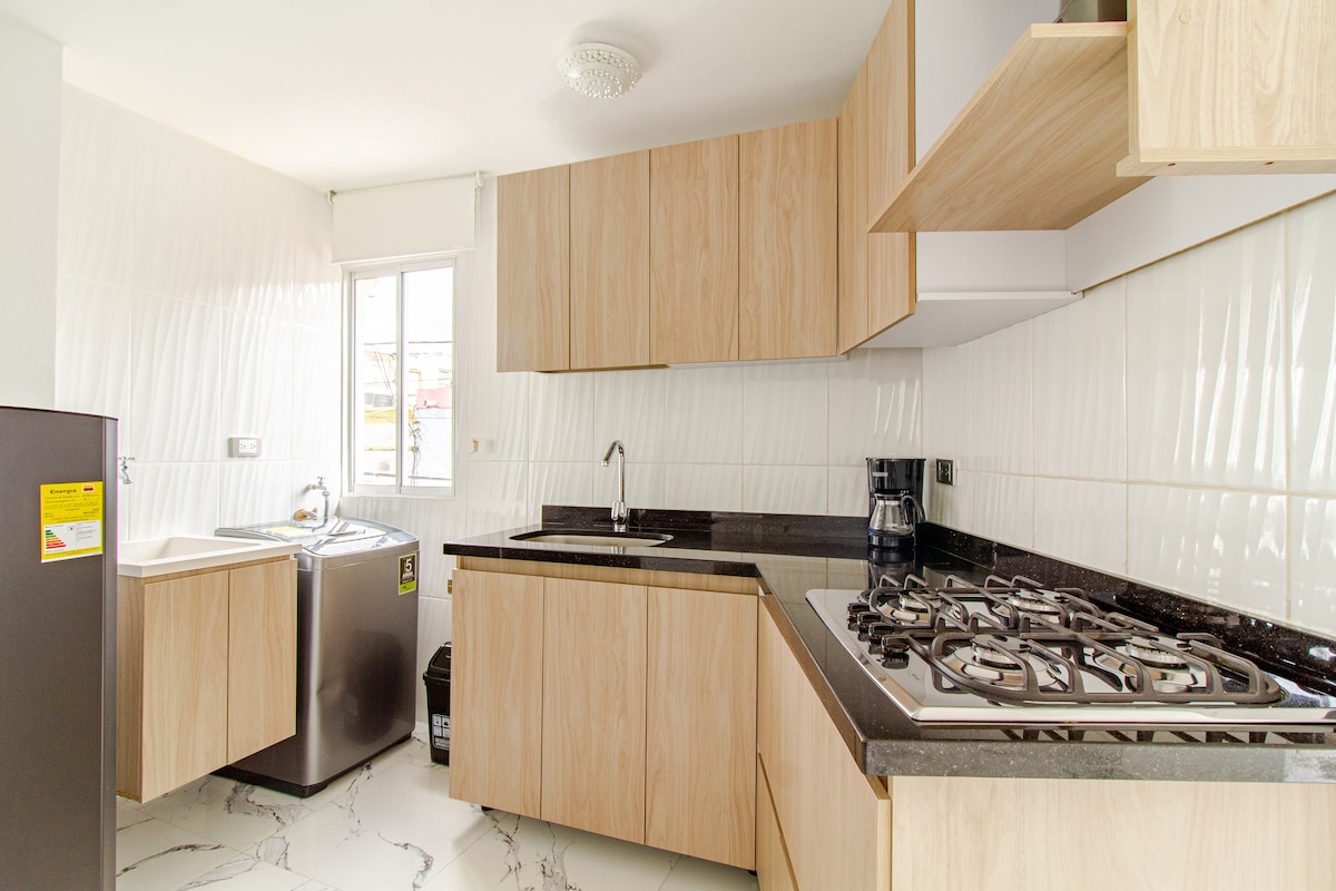 Enjoy Santa Marta in a charming apartment, located in the heart of the city's historic center. You'll find: 🛏️ 2 bedrooms with king and single beds. 🍳 A fully equipped kitchen to prepare your meals. 🌇 A rooftop terrace with 360° city views. 🏊 A building with 3 swimming pools. 🏛️ A unique colonial building in the historic center. A prime location, ideal for enjoying the city's architecture, gastronomy and cultural life. ✨
