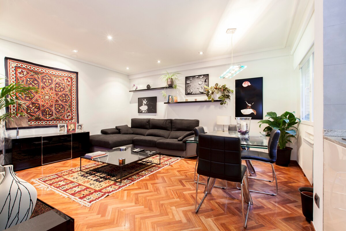 'Have fun with the whole family in this stylish accommodation'... Spacious apartment newly renovated by me, the owner; I used current and warm materials, taking care of the details to make you feel at home. It is accessed directly from the street, on the ground floor, by means of a code that allows you to check in as flexibly as you need. It has an area of 60 m², with high ceilings, in Chamberí next to the Moncloa interchange.