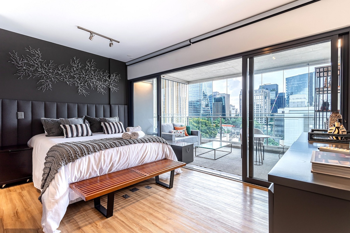 Studio with modern, functional and super stylish decor. It is in the heart of Vila Olimpia, a vibrant and modern neighborhood, close to Shopping Malls, restaurants, nightclubs, bike lanes, Supermarkets and with quick access to Congonhas Airport. 250 mega Internet and Smart TV with cable channels. In the Studio, we have a queen-size bed and a single bunk bed.