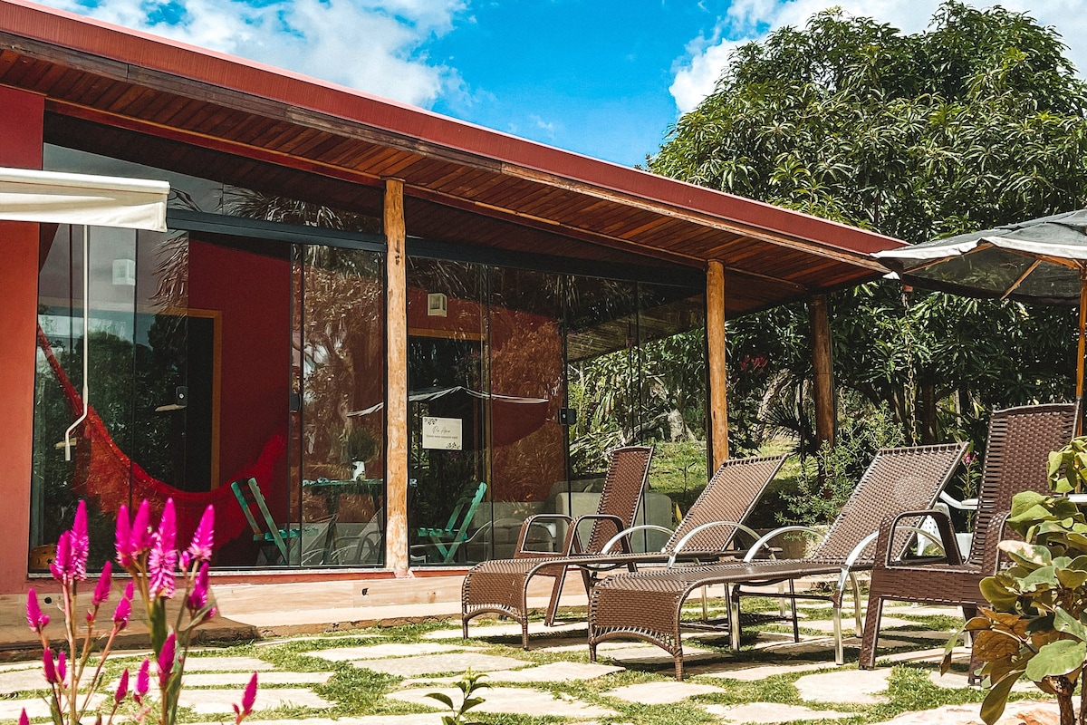 The Cabana is a simple, rustic space, located on the edge of Chapada, very cozy, with a fireplace to warm the cold nights and the bathroom overlooks the valley, solar energy reflectors, boiler with hot water for the shower and outdoor bathtub, wood-burning stove and a gas burner, clay filter, on the wooden mezzanine of the Cabana is the double mattress with a small table and two poufs, ceiling lined with burlap, ventilated, a unique and harmonious experience with nature!