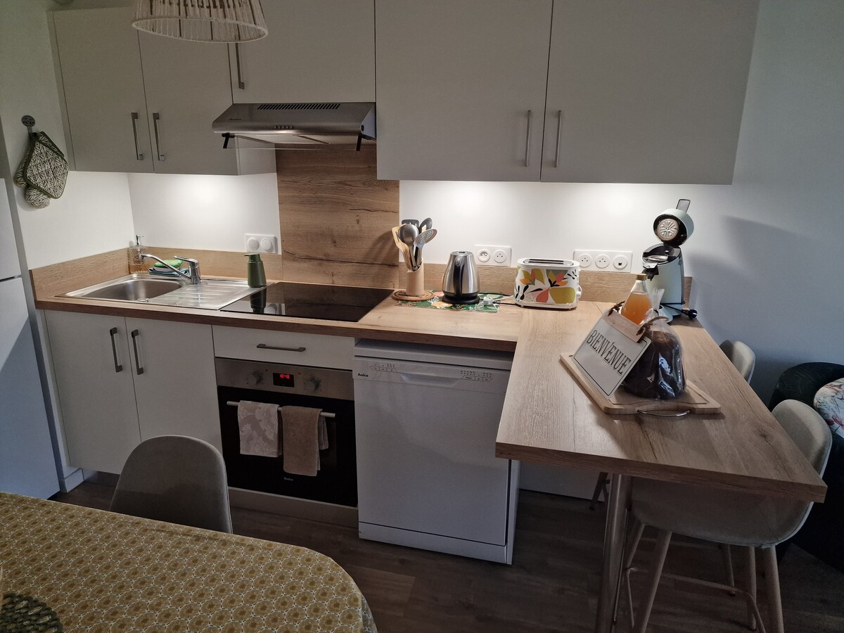 We are pleased to welcome you to a 44 m2 apartment, comfortable and well equipped, located on the second floor of a small condominium. It is surrounded 2 minutes from a bakery, supermarket, restaurants, bars, fish stalls, on Wednesday and Saturday you can go to the market which is a 2-minute walk away Our beautiful beach is a 10-minute walk away as well as the Calais dragon The apartment is equipped with Wi-Fi. Possibility of garage for bike or motorcycle.