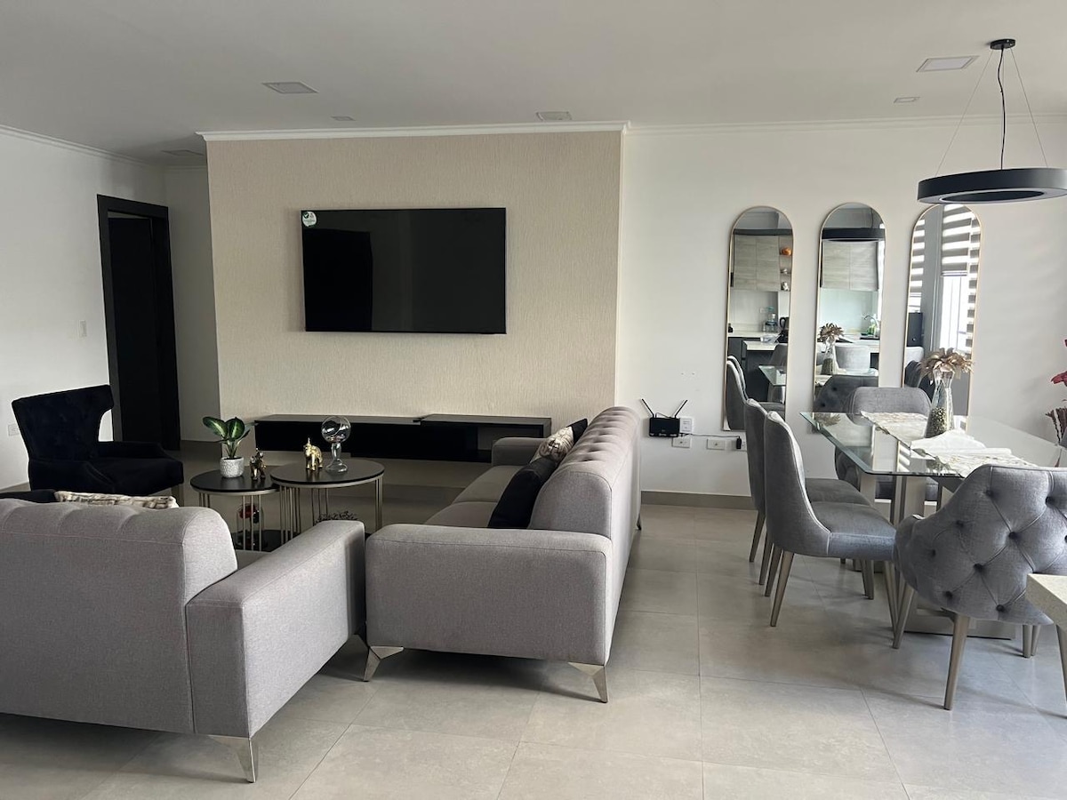 Enjoy a comfortable, elegant and stylish experience at this centrally-located place. It has everything you need for your stay, a fully equipped kitchen, a 60" TV in a comfortable living room, spacious and comfortable rooms. All the facilities are clean and tidy, making it an exceptional place to stay.