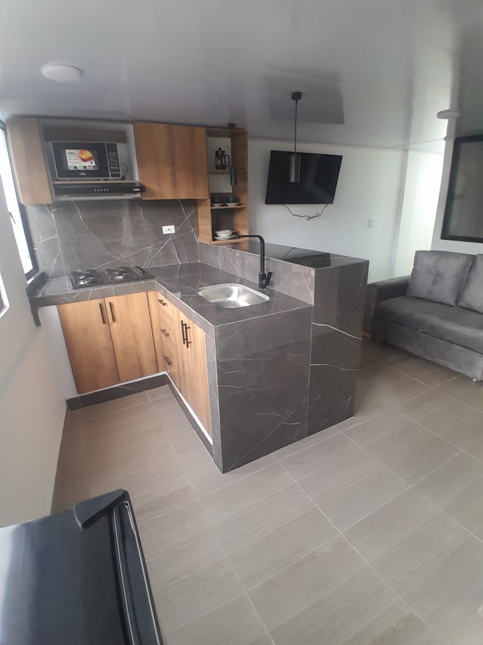 Aparta estudio amoblado con todo lo necesario para que disfrutes de una agradable experiencia, cuenta con servicios de Internet, Agua, luz, y gas Excelente ubicación, cerca a 5 hospitales , zona rosa de la Cuidad, 5 universidades, servicio de Portería. Servicio de lavandería, sala de cine, zona bbq , salón de eventos por un costo adicional, TV Android con Netflix. Encantados de recibirte en nuestro alojamiento.