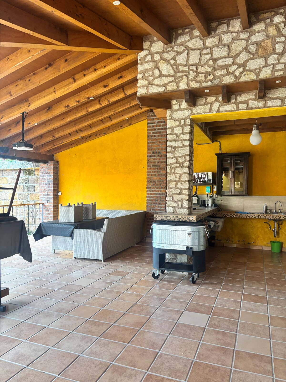 It is a brand new Villa you can make use of the entire property of 1000 mts2 where in addition to the house you will find different areas within the property such as the hot tub area with hot water with capacity for up to 5 people, a campfire area, a gas barbecue area, outdoor bathrooms for event or a meeting, area with children's games, mini soccer court with natural pasture, relaxation area with fountain, NO PARTIES OR EVENTS and the income of people not included