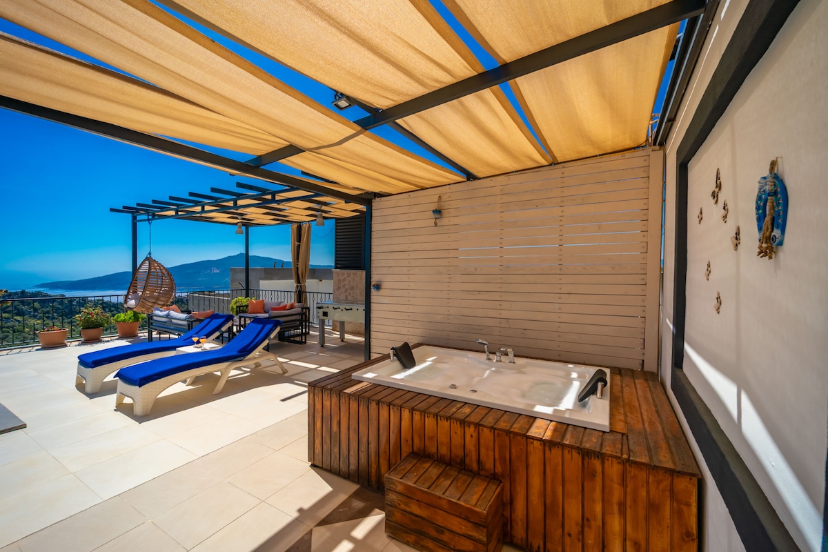 Are you looking for a quiet holiday away from the noise of the city and close to the center? Our villa is just for you. A comfortable holiday villa with stone and wooden architecture, large swimming pool, sheltered, luxurious furniture and jacuzzi, specially designed for families and honeymoon couples, awaits you, our valued guests. Our villa is surrounded by nature and is an ideal villa where you can relieve all the fatigue of the year. 2 km to the center, 300 m to the markets, 800 m to the sea, 2.5 km to the world-famous Kaputaş beach.