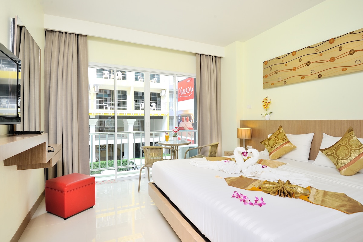 This room sizes 36 sqm, fully furnished with queen-sized bed, and featured with free WIFI, Air-Con, Small Fridge, Wardrobe, LCD TV 32", Satellite cable TV , Private bathroom Hot-Cold Shower. All rooms have the private balconies with the local view Muang Phuket, Mountain view and The Big Buddha view on mountain. The convenient store such as 7eleven minimart, Supercheap the great local minimart is nearby to walk just 2 minutes arrives. The laundry service located at next door so very convenient.