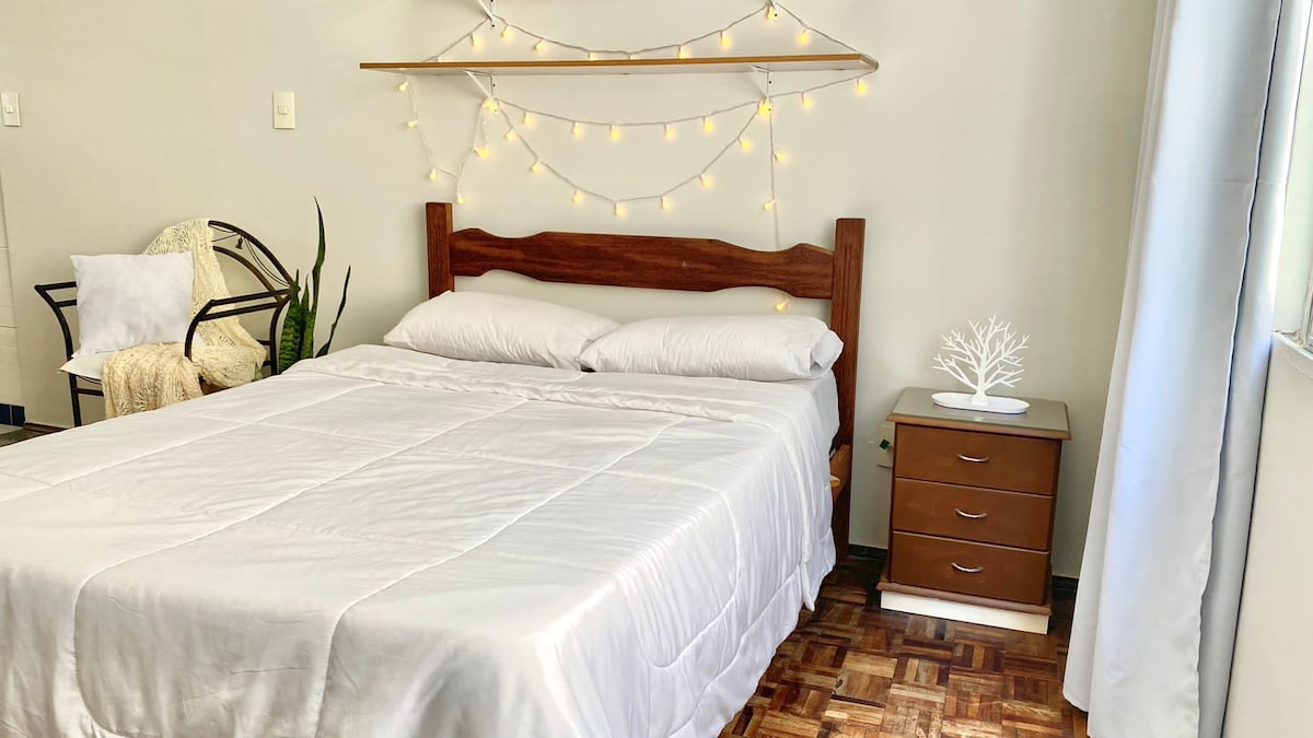 Accommodates 4 people, just 200 meters from the main avenue, and Univicosa! The house has been recently updated and tastefully decorated and is ready to welcome you for your stay in Viçosa! To access the apartment, it is necessary to descend a flight of stairs with high steps Available: -Smart TV - Dining table for 4 people - Fully equipped kitchen - Bedroom with single bed, sleeps 2 and double bed - Bathroom with shower Guests have access to the entire house! THERE IS NO GARAGE