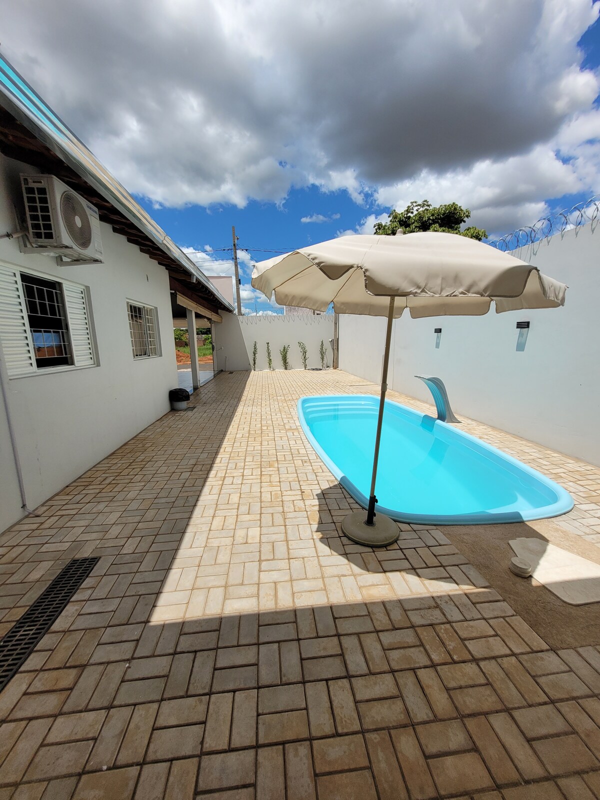 Bring the whole family to this great place with plenty of room to have fun. 1 bathroom, 1 outdoor shower. 1 bedroom: 5 single beds, 1 double bed, 1 extra double mattress, air conditioning, fan, rack Area with wall fan, 3 chairs, barbecue, Wi-Fi,. swimming pool with LED, waterfall, whirlpool. (There is a jacuzzi on-site but only for the hosts' use). Use by guests is prohibited. 2 marble tables 5 board games. There is no garage space, safe place with cameras