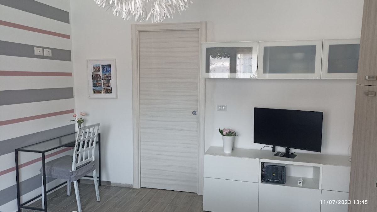 Our house, a stone's throw from the center, thanks to the large shared outdoor space, allows you to relax surrounded by nature. The fully independent accommodation is equipped with all essential services, has free indoor parking, the possibility of using a gym with a laundry room and a relaxation area with tables, chairs and barbecue. Garden with shared vegetable garden.
