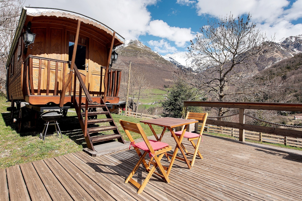 Nestled in the heart of a wild valley in the Hautes-Pyrénées between Lourdes and Argeles-Gazost, the cab'ânes du Pibeste and their four-legged friends welcome you all year round. The wooden hut and the chalet are located in a green setting at the foot of the Pic du Pibeste. They are made of noble materials to allow you to spend a cocooning moment out of time and to enjoy nature.