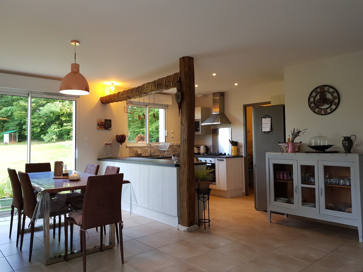 Located in the north of the Lot in varied landscapes and surrounded by many remarkable sites, this independent house from the 60s/70s on 2 levels has been completely renovated while keeping the retro style. Air conditioning is present on both levels. You can enjoy a wooded garden where garden furniture and a barbecue will be available. Possibility to accommodate a baby in addition. (Bed and high chair available) These lodgings are non-smoking indoors 🚭