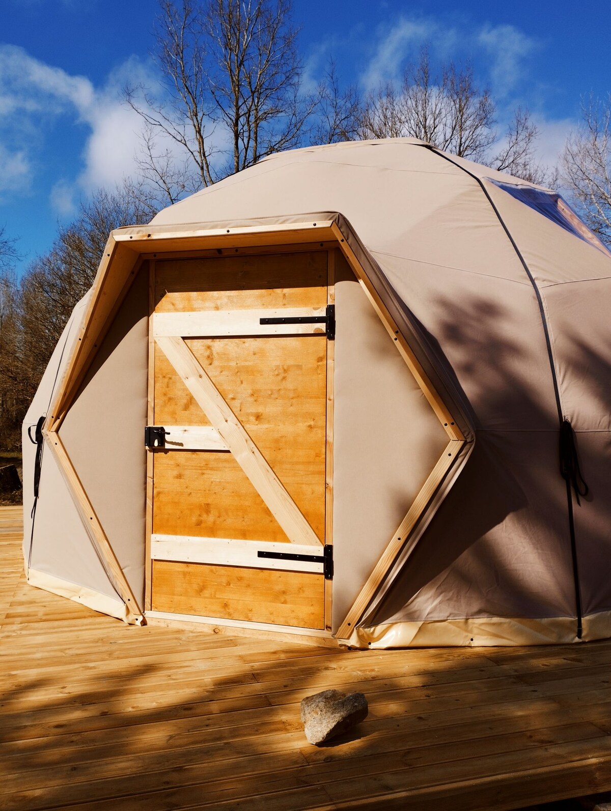 Welcome to the Dôme Lune de The Canopée du Mont! 🌙⭐️💫 Large and Beautiful Dome, French made, very nicely decorated, Wood burning stove. 🪵 🔥 Guaranteed heat even in winter ❄️ Romantic countryside getaway in a peaceful setting, 26 km from Mont Saint-Michel and 45 minutes from Rennes. Options, price for 2 people: - 45 minute session at the sauna area: 45 euros - 1-hour Nordic bath session: €59 - Breakfast: €29 - Romantic reception: €55