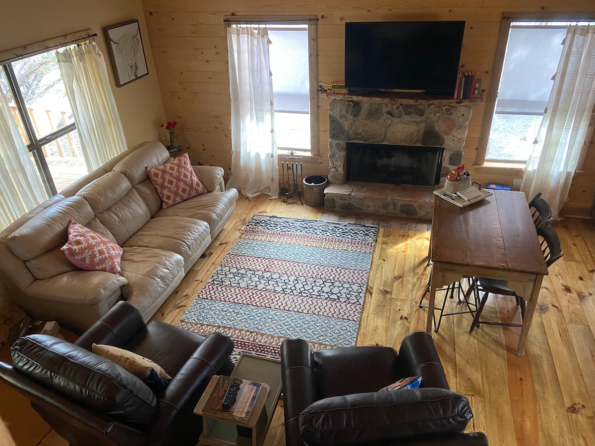 This peaceful cabin is centrally located in the Texas Hill Country, close to Garner State Park, Lost Maples State Park and Hill Country State Natural Area. Drive through the Hill Country on the Twisted Sisters, enjoying the beautiful scenery and wildlife. Close by, you can enjoy floating or swimming in the Frio River and the Sabinal River at the Utopia Park. Utopia has a renowned golf course featured in the movie Seven Days in Utopia. Concan 20 miles away also has a golf course.