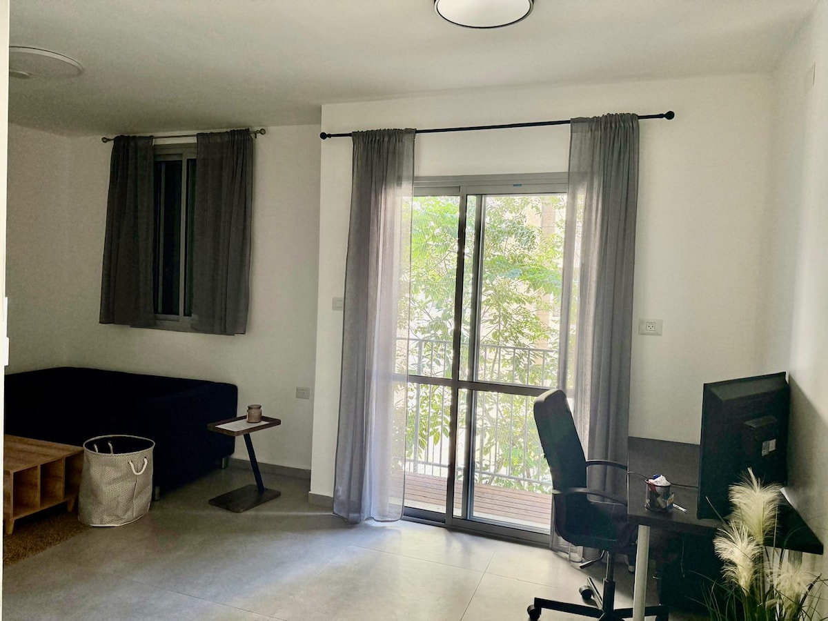 Charming and bright 3-room apartment! summoned for you for a short and long stay Suitable for an adult couple and families with 2 kids and a baby The apartment is located on the first floor in a prestigious and well maintained building Central location in Buchman neighborhood! In Modi 'in. In front of a commercial center (grocery store, coffee shops, restaurants, laundromat, synagogues and more) 15 minutes drive to airport. 1. Bedroom (double bed that can split into 2 twin beds), 2. Clinica with sofa that turns into a bed 3. Large living room. The apartment has a fully equipped and cozy kitchen. The balcony is relaxing and overlooks the building courtyard. Central location in the Buchman neighborhood in Modi 'in